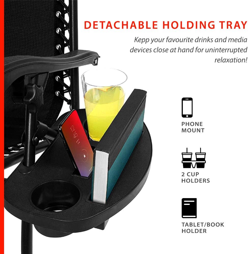 - 📱 Everything Within Reach: Detachable tray with 2 cup holders, phone slot, tablet/book holder, plus extra compartments.